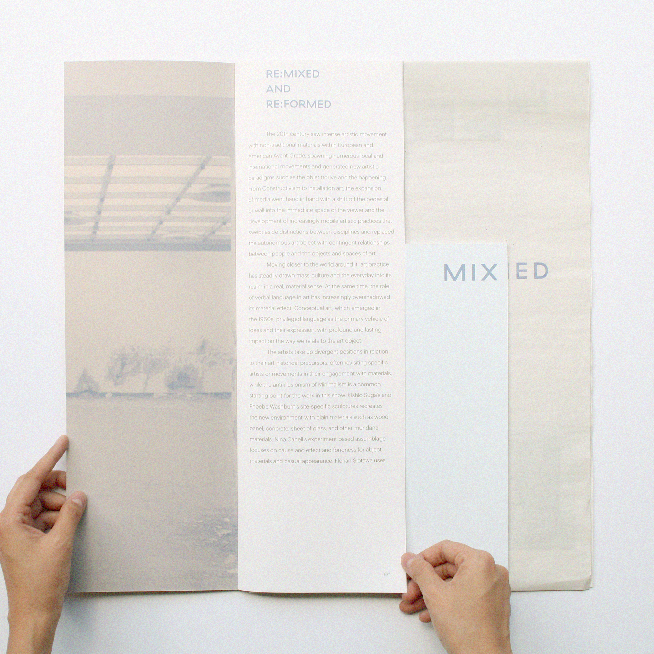 Re: is a catalogue of readymade art. Readymade art is works of art made from already manufactured objects. The catalogue is designed with the same approach of readymade art, utilizing only the default size of tabloid in various folding methods.